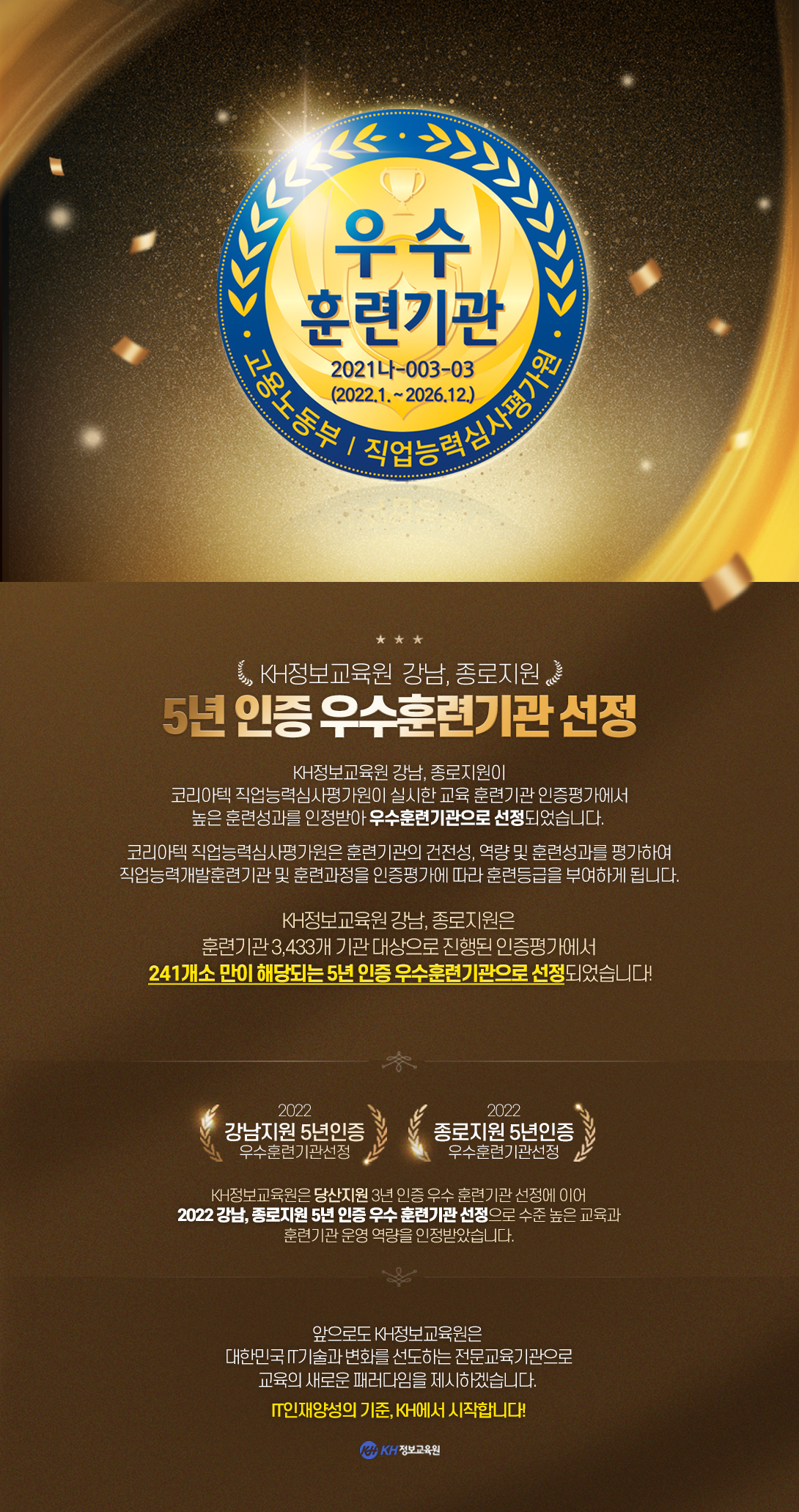 • 5년 인증 우수훈련기관 선정