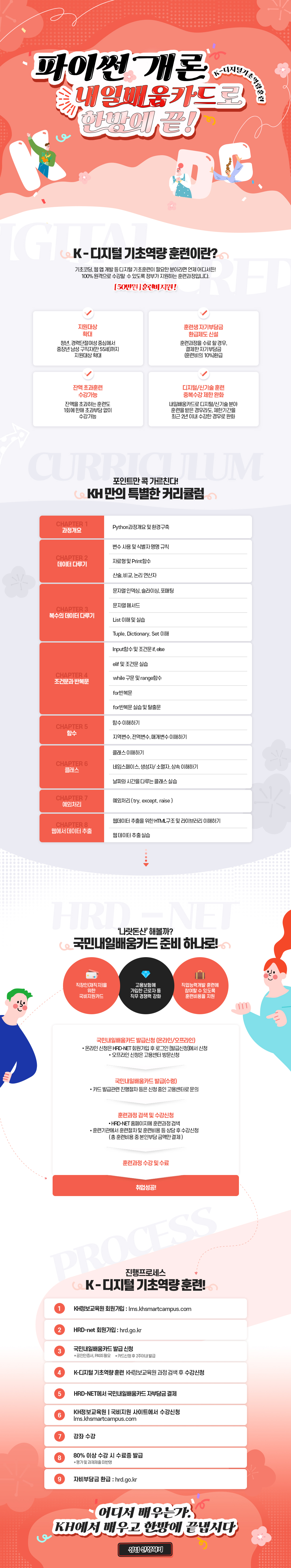 KH의 전 과정은 NCS(국가교육표준화)기준을 준수하며 최대 100% 무료 국비지원을 받으실 수 있습니다.