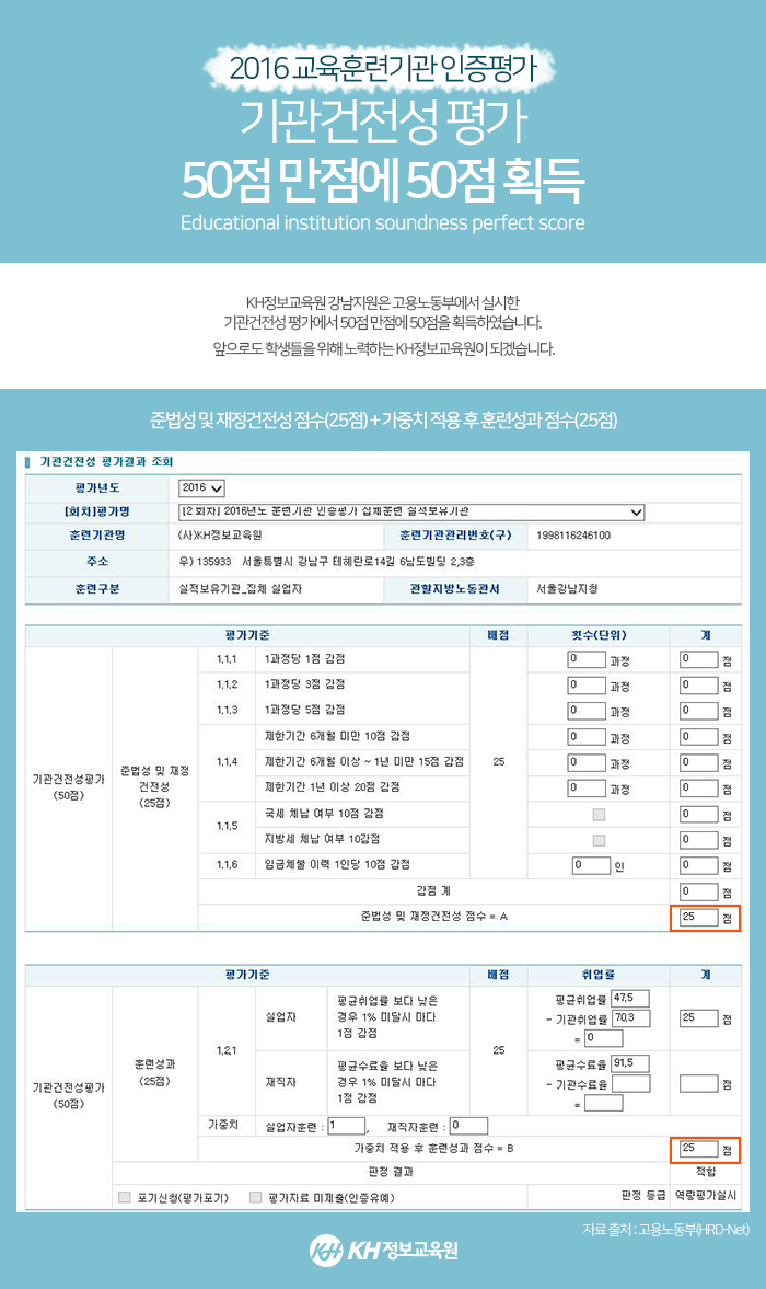 2016 기관건전성 평가 50점 만점에 50점 획득!
