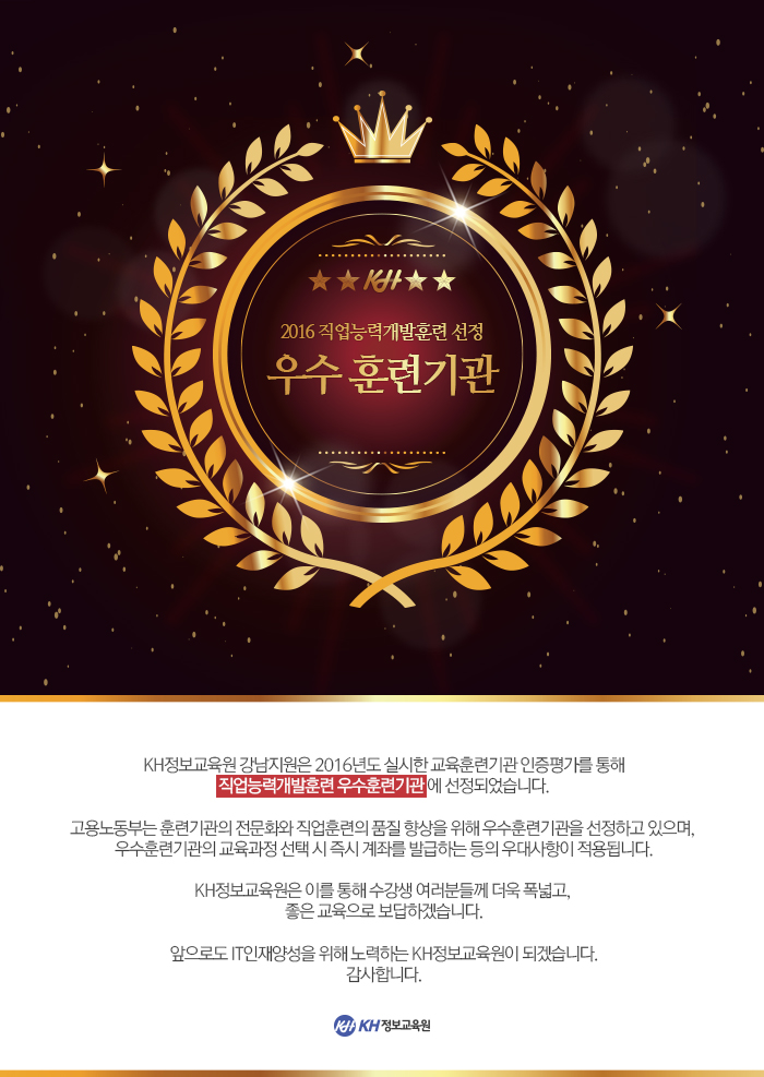 No.1 국내 최대의 취업 실적을 보유한 KH정보교육원에 오신 것을 환영 합니다.