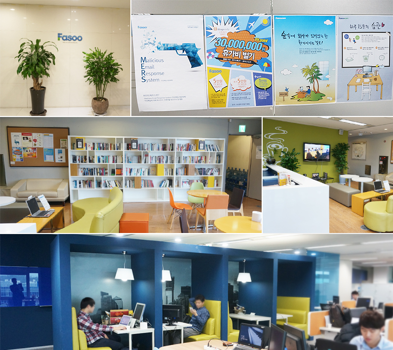 들어오면서 둘러봤는데, 조직문화가 경쾌하게 위트가 있다고 해야 할 까요? 붙어있는 포스터도 그렇고 배치나 전달하는 방식에서 밝고 긍정 적인 면이 많이 느껴졌어요.