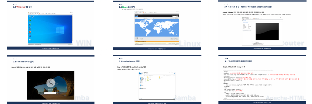 VMware 를 사용하여 리눅스와 윈도우를 구성하고 적절한 IP 주소, 라우터 설정 등으로 통신가능한 여러 네트워크를 구축하는 데에 집중한다.