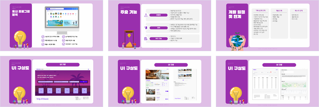 임** : - 서비스 기획자 - 형상/DB/백엔드 관리자 - 문서작업 - 유사 프로그램 분석/기능 도출 문서 - Git 가이드 문서 및 기능정의서 - 테이블 설계서 및 ERD - BE 프로젝트 설정 문서 - UI 디자인 - 메인 페이지 - 관리자 페이지 - 비회원 예약 조회 페이지 - 장바구니 페이지 - 숙박 예약 페이지 - 영수증 페이지 - 기능 구현 - 공공데이터 가공 프로그램 제작 - 객실데이터 생성 프로그램 제작 - 객실 기능 구현 - 첨부파일 기능 구현 - 장바구니 기능 구현 - 예약 결제/취소 기능 구현